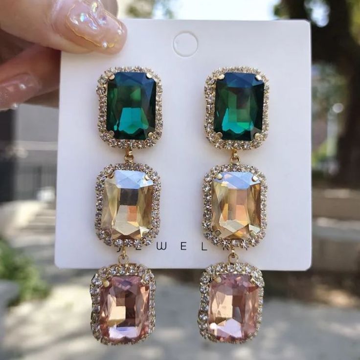 These earrings feature a stunning cubic, colorful, and rectangle shape design that is sure to catch the eye. With their unique shape, they can add a touch of modern elegance to any outfit. Made with quality materials, they are a must-have for any fashion-forward individual.